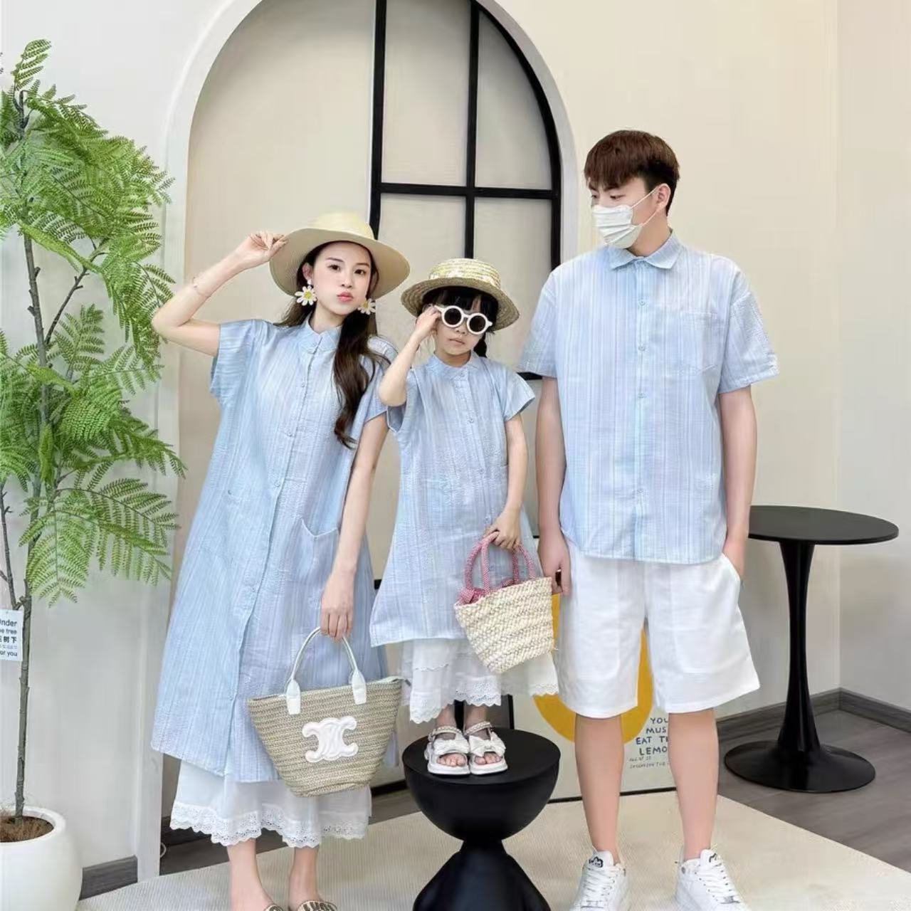 このセットはユニセックスデザインで、親子でお揃いのスタイルを楽しむことができ、さまざまなコーディネートが可能です。シンプルながらも上品さを感じさせるシャツと、華やかなワンピースの組み合わせは、家族の絆を感じさせる素敵なスタイルを演出します。軽やかで通気性の良い素材感は心地よい着心地を提供し、親子での特別な瞬間を彩る一着となることでしょう!