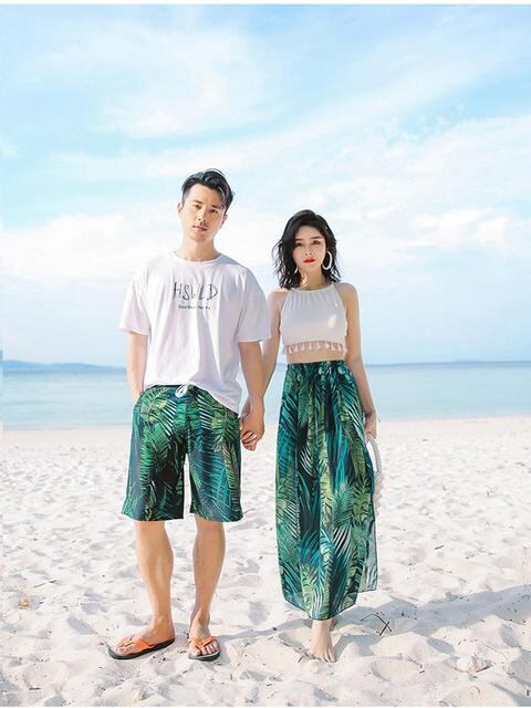 レディースは華やかなワンピーススタイル、メンズはリラックス感のあるショーツで、お揃いのコーディネートを楽しむことができ、特別な瞬間をさらに特別に演出します。