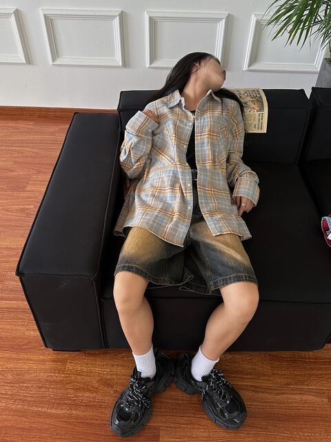 ペアルック アメリカンレトロ起毛チェック柄長袖シャツ 男女兼用レイジースタイル | ecmall